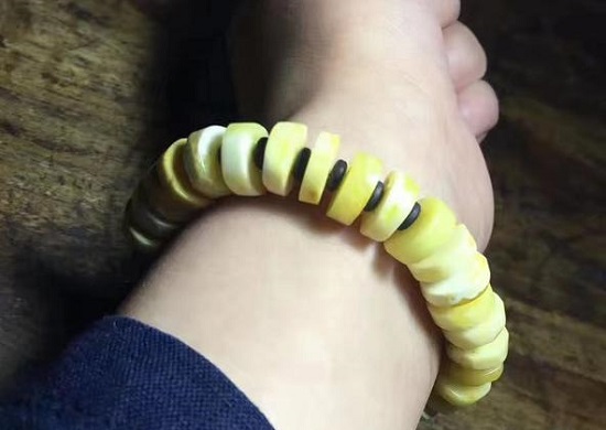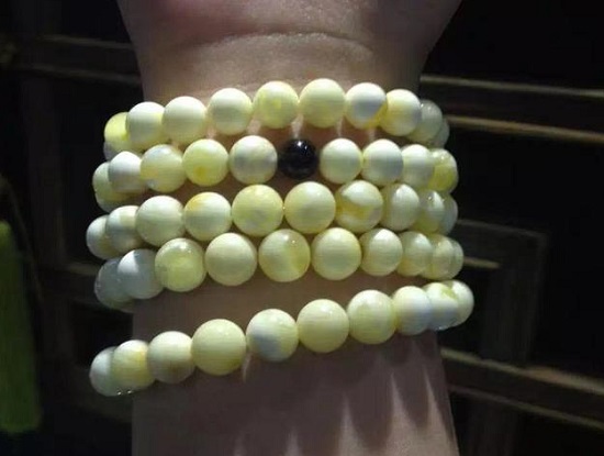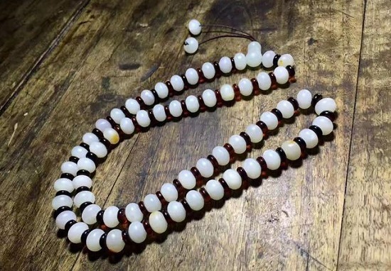 3、对孔位置向外突出偏尖,直径圆润,形似大枣或橄榄,所以也叫枣珠或橄榄珠。