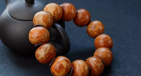 而老蜜蜡由于经历的时代比较久远,佩戴和盘玩的时间也要更长,所以颜色多数为深黄色或者深褐色,褐红色等。之所以能够有如此大的差别是因为老蜜蜡在自然环境下被氧化的时间较长,所以颜色出现了化学反应。