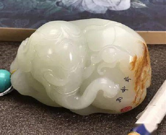 由4价铁离子致色成因的还有青玉,只不过4价铁离子含量比较多,青且浓郁的颜色,我们称之青玉的就是这样的颜色的和田玉。
