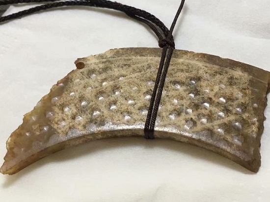 3,受沁严重,表面已经有点粉化的,这种要格外小心了,这种稍微不注意就会把皮壳损毁,盘玩这种要非常有耐心,把玉装进一个小的棉布袋子,最好量身定做一个,放到里面后,可以用双手去捂,不要揉搓,贴身带的话也一定不要让其在身上来回摩擦,就这样一直等表面玉质出现恢复,表现出玉肉感,才能适当小心的盘玩一下,这种玉表即使恢复玉质油性,还是比较脆弱的,平时也有注意防护。看个图例: