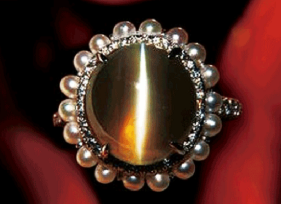 猫眼石(Cat's eye),即“具有猫眼效应的金绿宝石”。又称“猫儿眼”、“猫睛”、“猫精”、东方猫眼,外形有如宇宙般的光环围绕,象征爱,力量,希望,祝福与友谊。猫眼石常被人们称为“高贵的宝石”。它和变石一起属于世界五大珍贵高档宝石之一。是珠宝中稀有而名贵的品种变石猫眼也称亚历山大猫眼石,即有变色又有猫眼现象。猫眼石是金绿宝石中最稀有珍贵的一种。英国的宝石收藏家霍普珍藏着一块著名的猫眼石,这块宝石被雕成象征祭坛的形状,顶上有一火把,整个宝石呈球形,直径约为1-1.5英寸。猫眼石主要产于气成热液型矿床和伟晶岩岩脉中。世界上最著名的猫眼石产地为斯里兰卡西南部的特拉纳布拉和高尔等地,巴西和俄罗斯等国也发现有猫眼石,但是非常稀少。由于猫眼石表现出的光现象与猫的眼睛一样,灵活明亮,能够随着光线的强弱而变化,因此而得名。这种光学效应,称为“猫眼效应”。