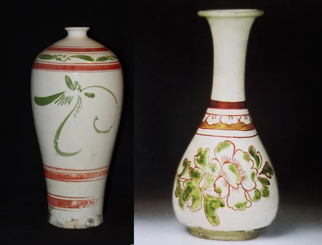 红绿彩不只有红绿两色,有时还有少量的黄色和黑色。烧红绿彩的窑口很多,山西长治窑、河南扒村窑、山东淄博窑等等,这些窑口都在北方,时间是在女真人统治下的金代。当时南方是南宋政权,后世常常把金代和辽代瓷器划归到宋瓷,所以红绿彩还有另一个名字:宋加彩。