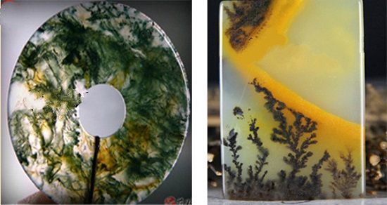 下图:玛瑙水草花图片VS黄龙玉水草花图片