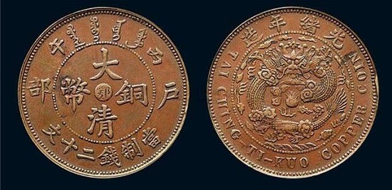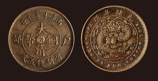 大清铜币鄂字版是古钱币中备受藏家关注的部分,在我国发行流通前后不过半个世纪,它在我国货币的历史长河中,仅是十分短暂的一瞬间,但中国铜元见证了中国从封建社会演化为半封建半殖民地社会的历史过程,是中国近代货币史和钱币学的重要组成部分,有这非常高的收藏价值和历史。此枚钱币正面珠圈内书“大清铜币”四字直读,珠圈外上环书满文字体的大清铜币,左右分别书“乙”“酉”年,中书“奉”字,下环书“當制錢十文”;背面珠圈内铸蟠龙纹饰,珠圈外上环书“宣统年造”,下环书“大清铜币”的英文字样,钱文清秀俊美,大气磅礴,背面龙纹深峻清晰,威风凛凛,钱币铸造精湛,包浆自然,流通痕迹明显,充满沧桑之感,具有很高的收藏价值。