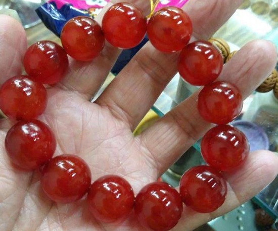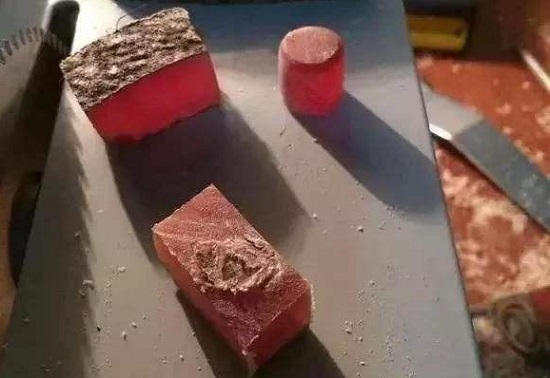 一般知道的是将晒制好的大象皮,切成大小均匀的小块,然后用切割工具,把这些均匀的小块切成圆柱形,并打磨光滑,然后就可以上车床了,在车床上,可以将大象皮的圆柱料,车制成圆珠,车制后的大象皮,在阳光下,具有一定的通透性,并带有血液的猩红色。
