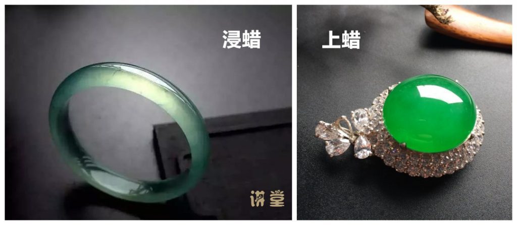 常见的翡翠外观优化有上蜡和浸蜡两种。