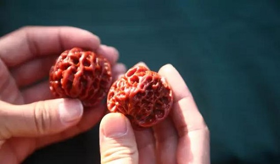 仿老核桃都是树脂或者是核桃磨碎的粉合成的,而且无论怎么玩都没有效果。如果仔细观察,会发现假核桃颜色比真核桃的要浅,看起来有一点像模具压出来的感觉;摸上去,假核桃的外壳手感会更光滑,真核桃的外壳则相对粗一点;另外,从重量上说,同样的体积之下假核桃比真核桃重,并且怎么砸也砸不开。