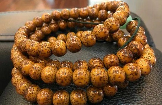这种包浆的质地效果是其他品类的星月菩提无法比拟的,因为想要包浆,珠子内部就得达到完全脱干水分,这一点和木质材料的特性是一致的,也就是说,如果一块湿哒哒的木头,你盘一年,也是很难形成浓厚的包浆,星月菩提也是如此。