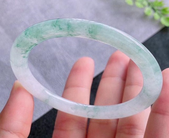 一、糯冰飘绿花,其水头还行,底子相对干净,属于中等偏上翡翠手镯玉料。