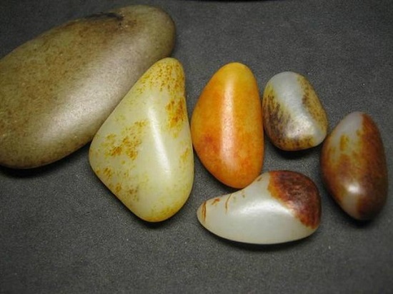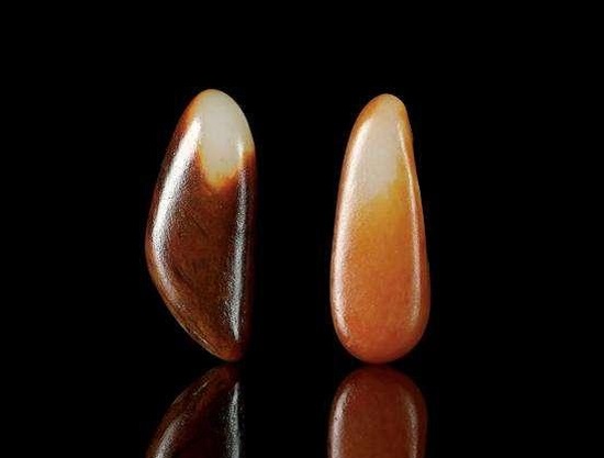 众所周知,和田玉籽料的形成,是因为和田玉从矿脉剥落,然后被雨水冲到河床里,再经过河水的千万年的冲刷,剥蚀,慢慢的表面变得圆润光滑,呈鹅卵形,带有玉质的通透度,并且,因为与一些致色元素接触,产生了各种各样颜色的皮色。