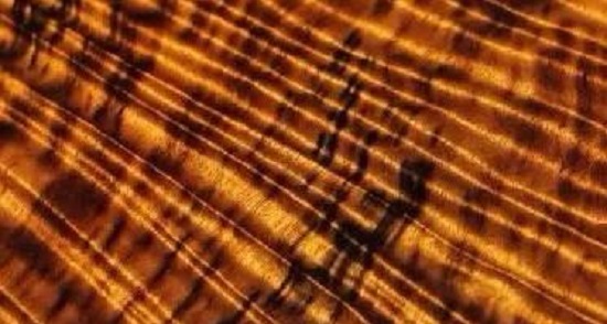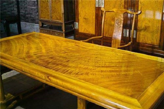 纹理成细丝状,条条金线,清晰流畅,木材表面在阳光下金光闪闪,金丝浮现,有一种尊贵的高雅气息。