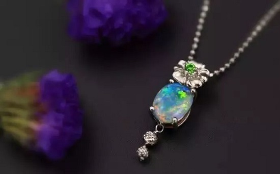 欧泊因其独特的变彩效应而文明于世,它属于水养宝石,定期“泡水”是它的一种保养方式,避免因失水变成蛋白石,变彩也会变得更强烈。