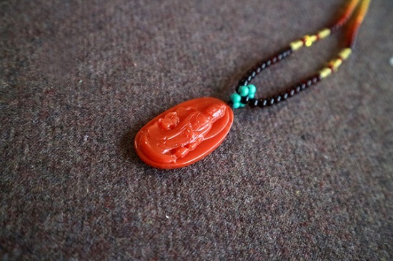 在颜色上,南红的颜色十分自然,色泽鲜润具活性感,纯正、厚重、协调,而烧色玛瑙和红色玻璃的颜色往往十分不自然,而且艳丽轻浮。