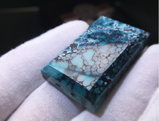 当然,以上鉴别方法也有局限性,只适用于带铁线的绿松石,这要让喜欢无铁线绿松的玩友大失所望了。但是大伙儿也千万不要觉得没铁线的就一定是好绿松,说句实在话,执意追求无铁线更容易买到假货,因为无铁线的料子更容易造假,市面上大多也都是绿松石伴生矿或者其他材质冒充的,很多瓷度低的泡松也没啥铁线,图片没办法鉴定,价格超低,十分诱人,新手很容易吃药。这个时候,铁线松的优势就体现出来了,个人觉得这些铁线不仅美的无法复制、独一无二,同时也大大提高了您买到真绿松石的成功率,对于新手玩家,我更推荐从铁线松下手,一步步培养感觉。