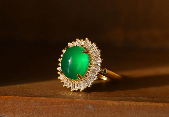 宝石玉石镶嵌的戒指,诸如常见的钻戒、红宝石戒指、翡翠戒指、南红戒指等,都是比较精致且贵气的,是显气质的法宝。大颗的镶嵌宝石戒指通常是戴在中指,而小型的宝石戒指则是戴在小指,可以单独佩戴也可以一起戴,整体起来有对称且相互辉映的效果。