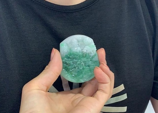 山水牌,观音牌都是比较常见的翡翠雕刻题材,也可以说是畅销题材,通常好多料子本身可能有瑕疵,所以山水观音也比较常见!