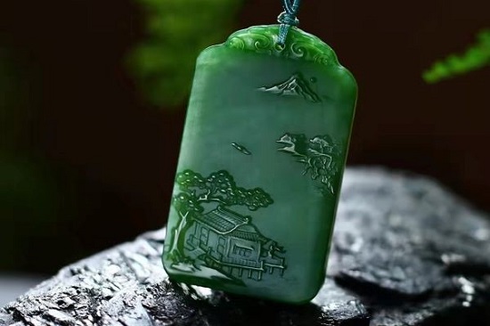 其实,在判断碧玉的收藏价值时需要考量很多因素,而且与判断白玉有较大差异。碧玉含透闪石85%以上,呈现的颜色有灰绿、深绿、墨绿等。和白玉追求凝脂不能太透不同,碧玉首先要水头好,透明度要高;其次是颜色鲜艳,翠绿最佳,墨绿其次,黑绿、淡绿资质差一些,黄绿的价值更低;此外黑点杂质越少越好。