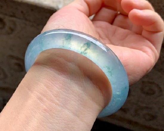 二、种嫩且为糯冰种以上的种水:这类玉质的翡翠手镯其种水一样也会越戴越透亮,但是由于其种嫩稳定性不够,因此随着时间推移,其颜色会微微变得发灰,其灰度不会越来越深,到一定时候其颜色就会稳定了。