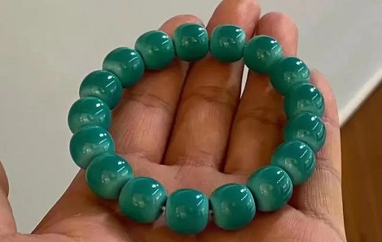1,先看瓷度。所谓的瓷度就是硬度,光洁度,密度的总称,俗称玉化。卖家通常说盘玩后可玉化,那是骗人的。盘玩后可能改变颜色和润度,因为身体的油脂和绿松石充分的融合,看起来就会很水透,但绝改变不了瓷度。好的绿松石就像陶瓷,温润洁净,色泽柔和。