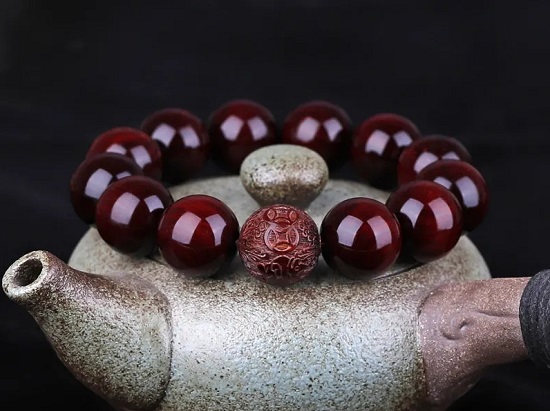 然后,如何保持亮泽。小叶紫檀手串经过佩戴后发乌不亮了是正常情况,但不是不可改善的情况。木头本身都会产生一种木浆,这层包浆就像一层保护膜一样可以锁住水分保持亮泽度。搓揉木球可以使包浆分泌出来。尽量不要沾到大量的水一旦沾到请马上擦拭干净。不戴的时候放在密封袋里避光保存。