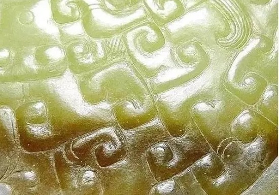 其三,大多数和田玉质的古玉解玉砂磨痕清晰可见。由于和田玉的特殊品质,大量的古玉上解玉砂磨痕清晰可辨。