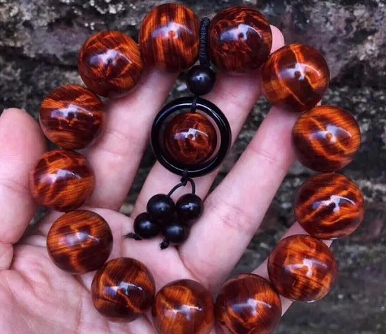 一定要是满瘤疤的,正反都要是满瘤疤的,并且颜色深红带黑瘤的为最佳,最值得收藏。此外,尺寸越大越好,最好是2.0cm以上为佳,这种满瘤疤的一般都是树头老料,油性十足,芳香四溢。也是男人必玩的木质手串之一。
