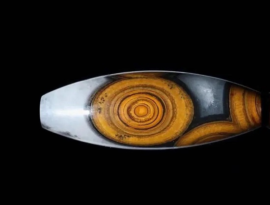 3》眼根。蒙天珠的眼睛,通常是有眼根,就是眼睛色彩会深入材质的内部。如果冰透材质(红玉髓,白玉髓,黄碧玉等等材质的蒙天珠),在打灯的情况下,你可以清楚地看到蒙天珠眼睛的根在珠子内部。